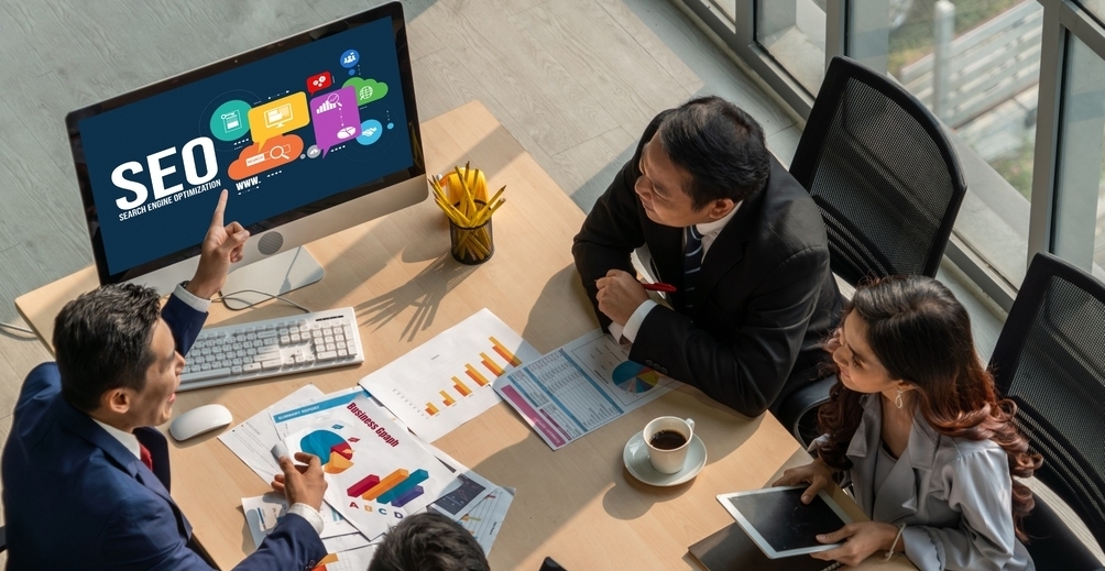 SEO search engine optimization for modish social media and online retail business showing on computer screen